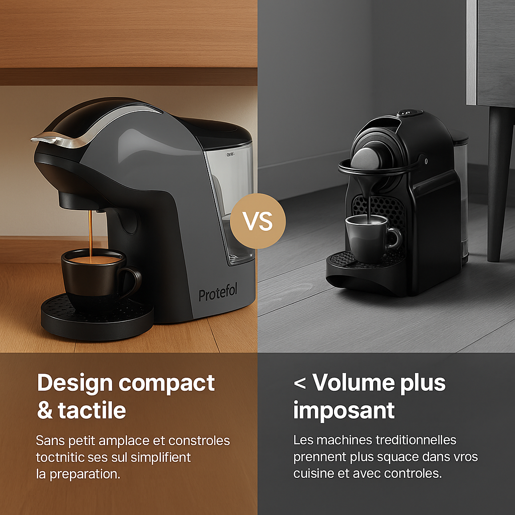 Très simple. L'écran tactile intuitif vous guide à chaque étape : sélection du type de capsule, réglage de la température et du volume. Même sans expérience, vous préparez un café parfait en quelques secondes. Confort et modernité garantis.