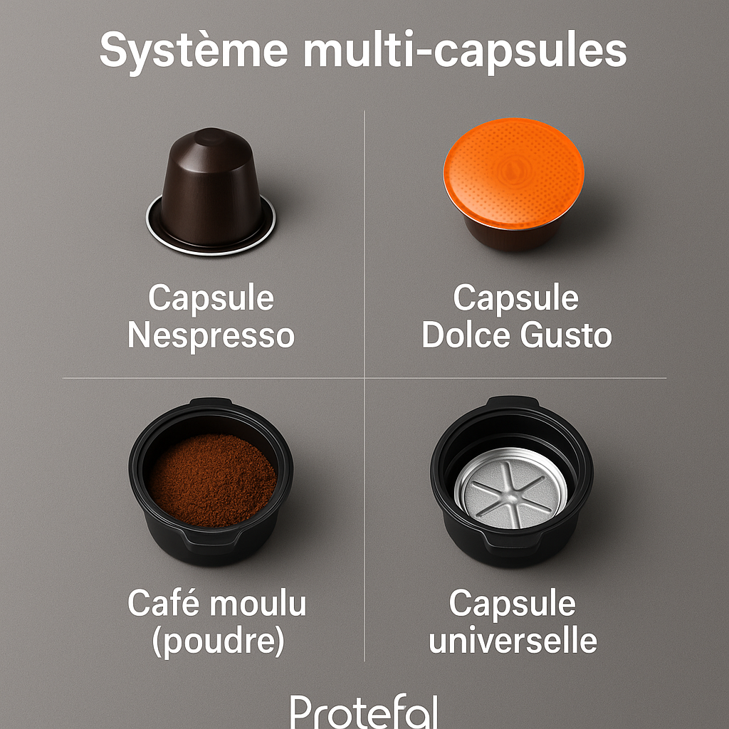 Oui, totalement polyvalente. Cette machine 4-en-1 accepte les capsules Dolce Gusto, Nespresso, Ground Pod 44 mm, et même le café moulu. Vous n'êtes plus limité à une seule marque. Idéale pour toute la famille ou le bureau, avec un SAV local en Algérie.